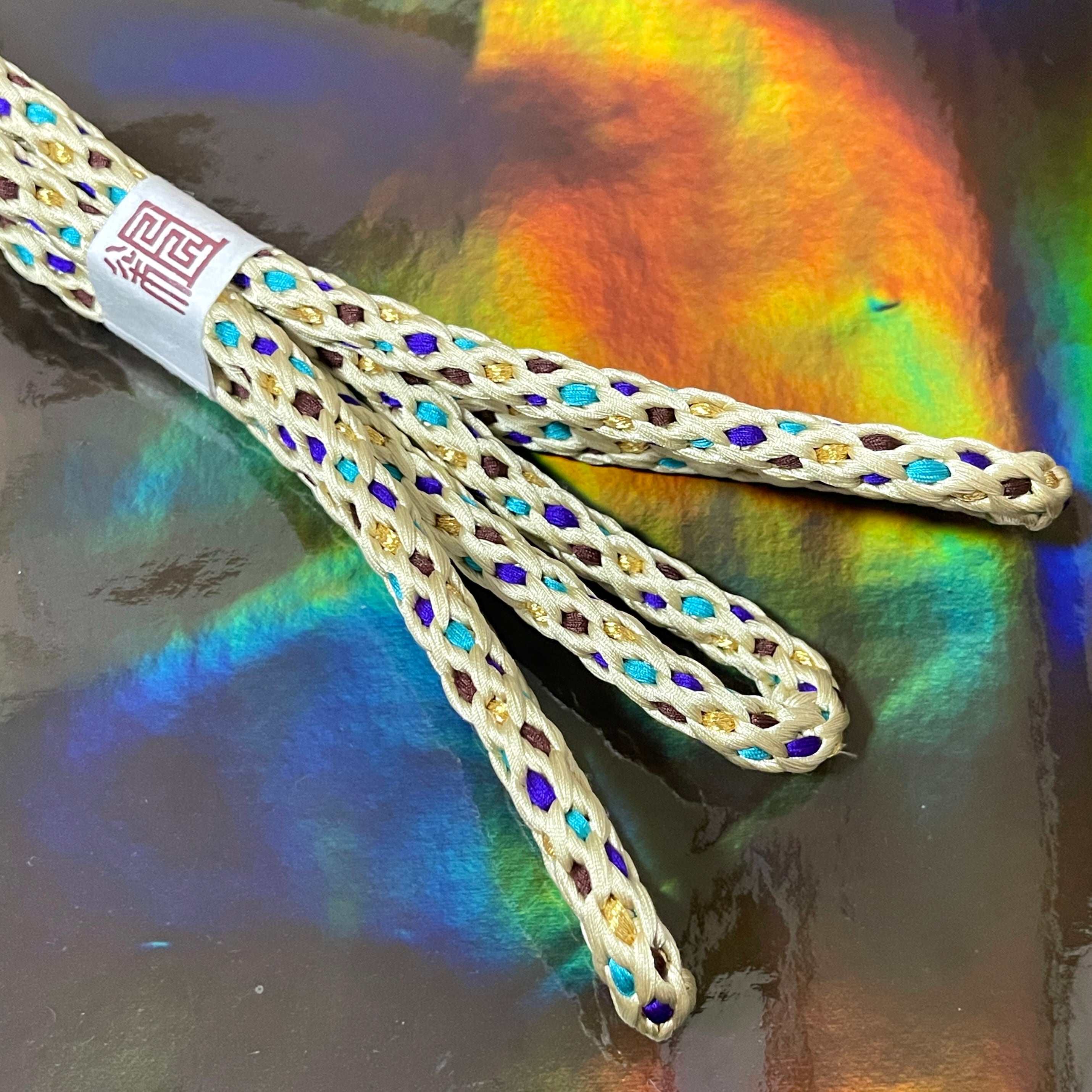 HaRuKi組 帯締め 籠目組 ベージュ×ゴールド×ブルーグリーン×ブラウン×パープル